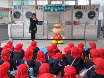 クイズをしたり紙芝居を見せていただきながら、エレベーターやエスカレーターに安全に乗れるよう教えてくださいました。