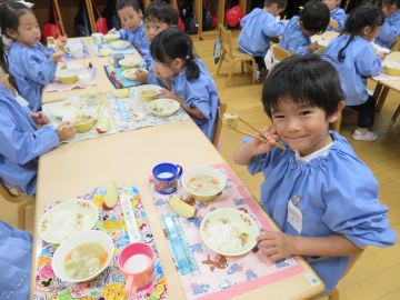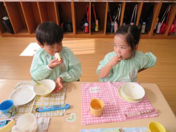 給食の先生からのお手紙で、よく噛んで食べると強い歯になると聞いたこども達、しっかり噛むことを意識して食べようとしていました。