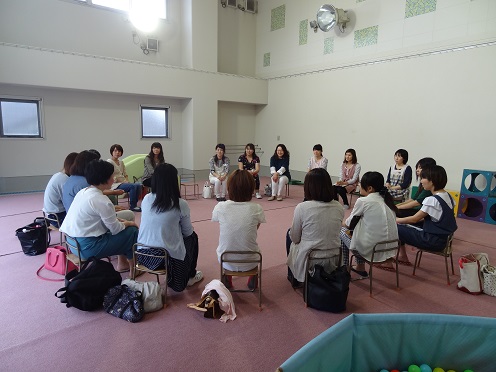 懇談会。日頃の子育ての悩み、感じていることなどを話されていました。