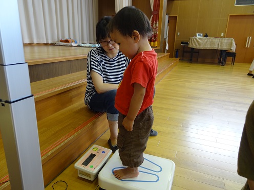 遊びの傍らで、身長と体重も測ってもらい、成長を確かめる機会となりました。