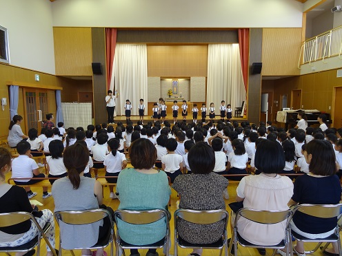 以上児の誕生会。保護者のみなさまとお祝いしました。