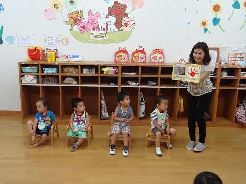 未満児の誕生会。誕生者は4人。ちゅうーりっぷの2人と、たんぽぽの2人。
