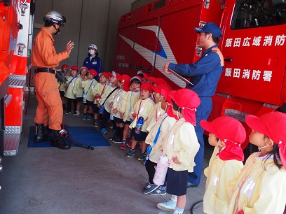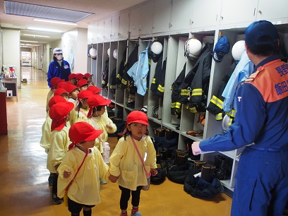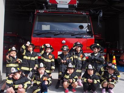 防火服も着せていただき、ちびっこ隊員も出動かな? みんな、格好いいね。