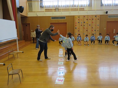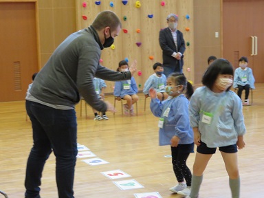 今回は数字・気分を教えてもらいました。タイラ先生の言う数字のカードを見つけます。見つけられたら先生とタッチ!