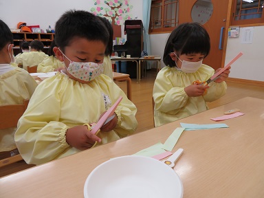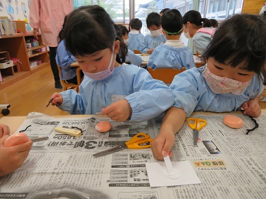 以上児は制作をしています。何を作っているのでしょうか。。。来週完成します。お楽しみにしていて下さい!