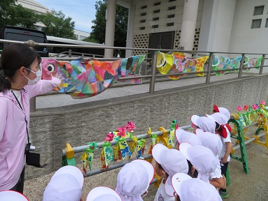 運動会が終わってからは、お友だちが作ったこいのぼりを見て回りました。