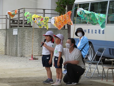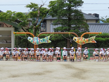 最後はみんなで「こいのぼり」を歌い、こいのぼり運動会は終わりました。