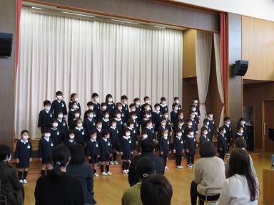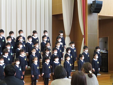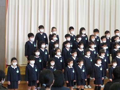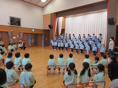 今年は年長児と保護者の方で行いました。年長さんの歌声には気持ちが入っていてとてもきれいでした。