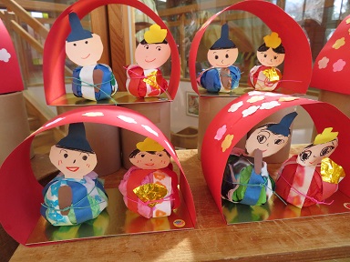 たんぽぽさんのおひな様は、シールで顔を貼っています。