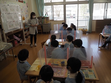 今年はコロナウイルス感染症拡大防止のためクラスの交流が出来なかったり登園要請があったりで様々な制約がありましたが、この最後の時期に年長さんの遊びに招待してもらって小さなお友だちは「年長さんってすごい!」「楽しかったな」と憧れや尊敬のまなざしを向けていました。