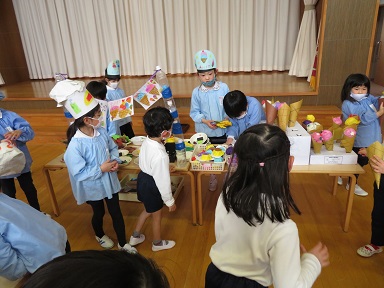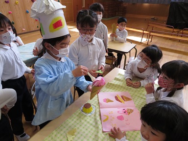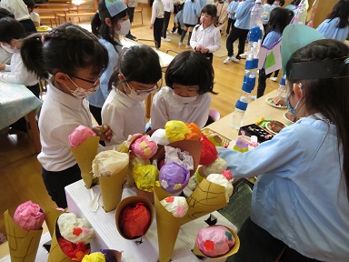 本物のアイスみたい。年長さんが作ったものは工夫が一杯でした。