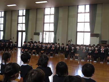 卒業式の総練習。今年もコロナ禍で在園児は卒業式に参列できないため、この日に『卒業をお祝いする会』として、卒業式を体験しました。