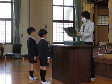 年長さんが卒業証書をいただくところを見せてもらいました。