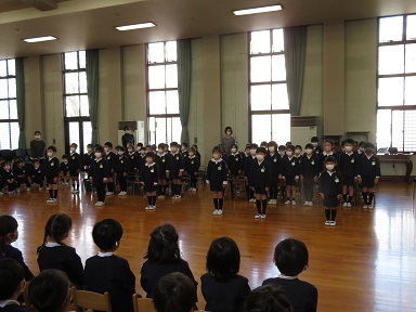 当日はできない「在園児より送ることば」を言うことができ、「送別の歌」を向かい合って1番を在園児、2番を卒業生が歌うこともできました。