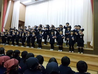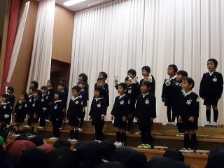 | 12月27日(木)、2学期の終業式が行われました。2学期の様々な出来事を振り返り、また冬休み中にある年末年始の行事に期待を膨らませる子どもたちでした。1月9日の休み明けには、みんな元気に登園してくることでしょう。 |