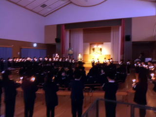 ![]() ローソクの灯りを見ながら、みんなで成道会のうたを歌いました。 |
