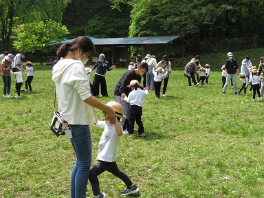 レクでは「おいものてんぷら」や体操をして親子の触れ合いを楽しみました。