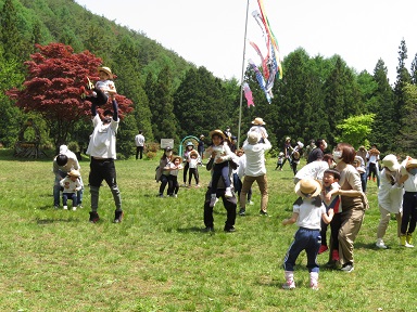 年中さんの親子レク「ひっつきもっつき」 手と足がくっいたよ!