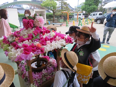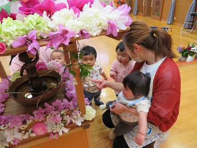 おしゃか様のお誕生日は4月8日ですが、幼稚園では1か月遅れで行っています。