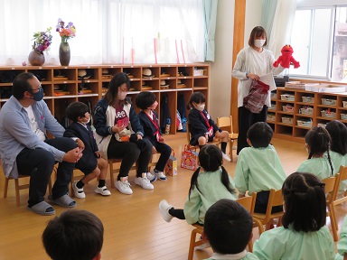 お父さん先生・お母さん先生に遊んでもらったり、写真・おもちゃなどを見せて頂きながら、産まれた時のお話をお聞きました。