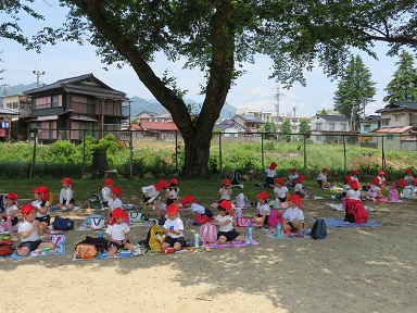 お家の方にはお弁当の準備、斎藤さんには畑のお世話、用務員の先生には苗の植え方を教えて頂いたり、グランドを女子高校に貸していただいたりと、周りの皆さんのご協力を頂きながら園の活動が出来ること、皆さんに感謝しています。