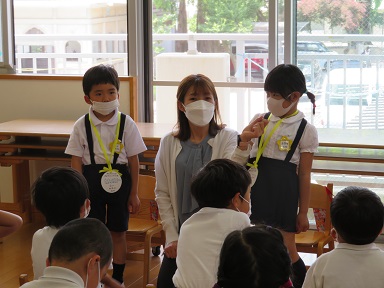 年長さんでは、名前の由来をお話しいただいています。お家の方々の思いや願いのこもった名前であることを知ります。