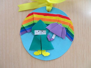 ペンダントは、雨の中のお散歩と虹。梅雨の時季を感じられるペンダントでした。
