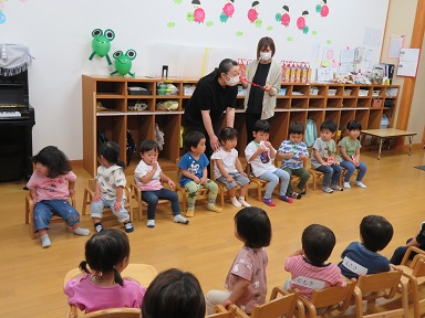 6月生まれのお友だち、おめでとうございました。ご来園頂いた保護者の皆さんもありがとうございました。