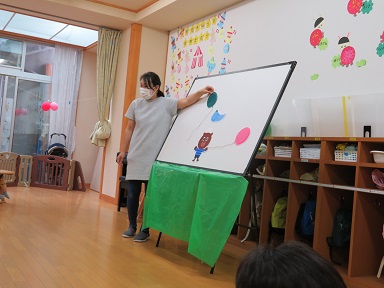 今月は、パネルシアター「くまさんのふうせん」を見せてもらいました。