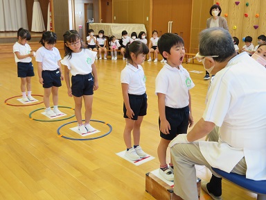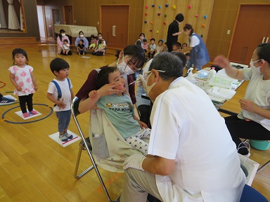 園医の上松歯科の池田先生にご来園頂きました。大きな口を開けて診て頂けた年長さん、ちょっと怖かったけれど先生に抱っこしてもらって頑張ってみて頂けた未満児さん。みんな上手に診てもらえました。また、自分の順番が来るまで静かにしたり並んで待つことが出来ました。