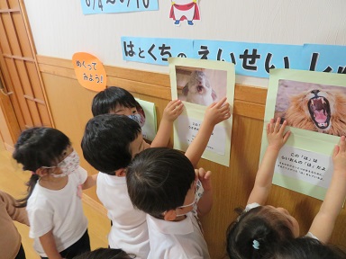 6月4日~10日の「歯と口の衛生週間」にちなみ、給食室前と1階フリースペースに栄養教諭と養護教諭が掲示をしました。
