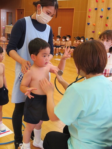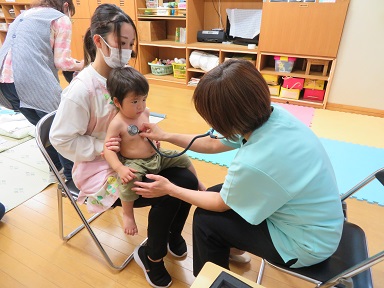 今年度も、さの小児科の佐野先生にご来園頂き内科検診を行いました。先生が声をかけながら見て下さいましたので、安心して受けることが出来ていました。