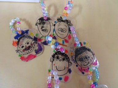 年長さんはプラバンでキーホルダーを作りました。プラバンにお父さんの顔を描いてトースターに入れると、、、小さくなるんです。不思議。その様子を興味深く見ている年長さんです。