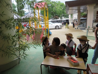園でも七夕の飾りを作ったりお話を聞いたり歌をうたったりしながら七夕を待っている園児たちでした。