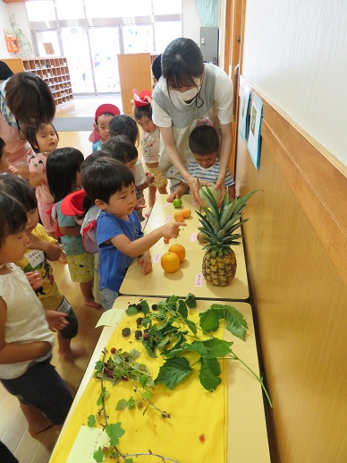 七夕を通してお飾りの制作をしたり七夕のお話を聞いたり自然の恵みに感謝して野菜や果物を見たりと様々な経験をしました。
