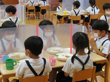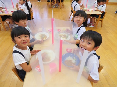 遊戯室に子どもたちが入ってきました。カレーライスのいい匂いがしています。
