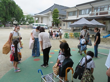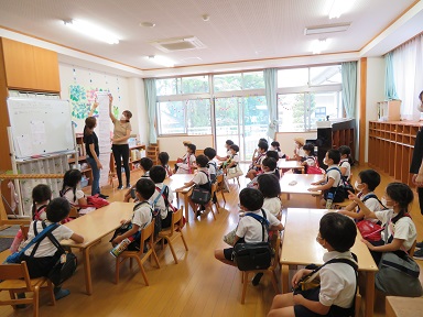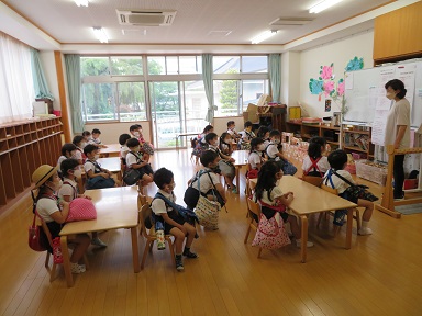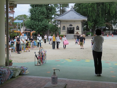 子どもたちが玄関に出てくるまでの間、園長先生から保護者の皆さんにお話をさせて頂きました。