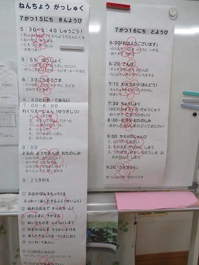 合宿の日程全てに花丸がつきました。その数16個! みんな、よく頑張りました。