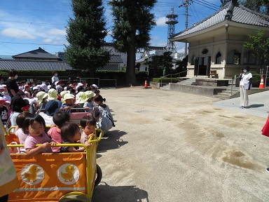夏季保育中に火災の避難訓練がありました。普段と違う保育室や先生のクラスもありましたが、落ち着いて訓練に参加することができました。