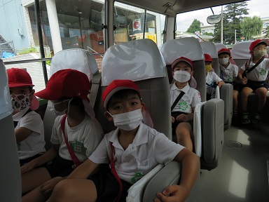 暑い日でしたのでバスで畑まで往復しました。