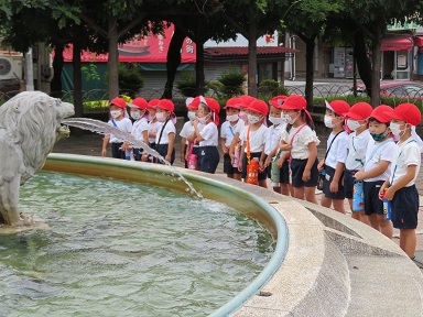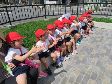 年中さんは中央公園まで園外保育に出かけました。噴水から突然出てくる水を楽しんで見てくることが出来ました。