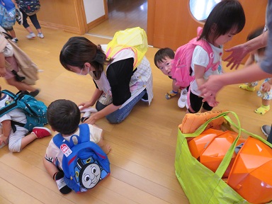 防災の日にちなみ、園では2日に防災訓練を行いました。