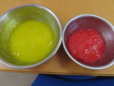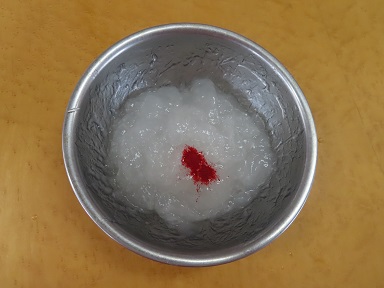 またまた食紅登場!今回も赤で!絵の具でもオッケー。