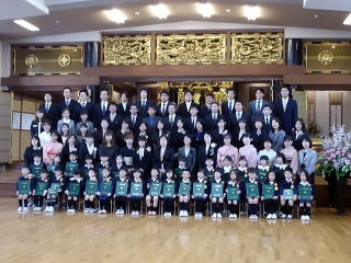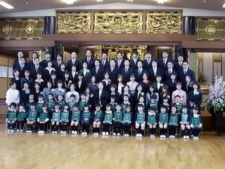 | 3月19日(火)、善勝寺本堂において、第99回卒業式が行われ、年長62人は慈光幼稚園を巣立っていきました。善勝寺本堂での厳粛な卒業式の後は、遊戯室でPTA主催のお別れ会が行われました。 |