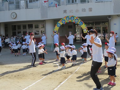 園長先生とおちかいをします「仏の子は元気に運動します」「仏の子は明るく伸びます」