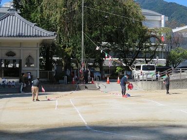 川手PTA会長より挨拶をして頂きました。今年度は3年ぶりに親子競技を行い、子どもたちにとっては初めての親子競技となりました。お家の方にも運動会に参加して盛り上げて頂く事が出来ました。