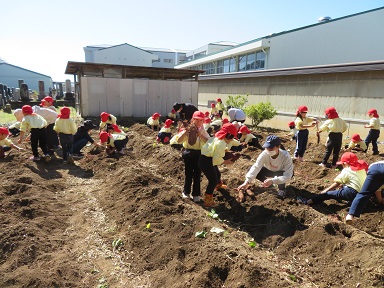年長さんが飯田女子高校の畑に芋ほり遠足に出かけました。