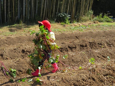 つるを引っ張ったらお芋がついてきた!