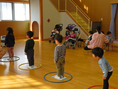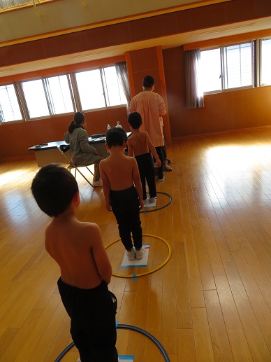 順番を待つ2歳のお友だちも上手に並んでいます。奥で待っているつくしさんも静かに待っていることが出来、小さいながら遊戯室の静かな雰囲気を感じ取っているのだと感心しました。