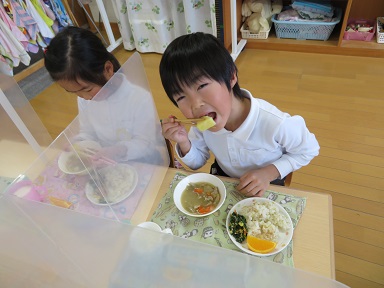 年長さん、畑のお世話をして下さった皆さん、給食の先生のおかげでおいしく頂く事が出来ました。